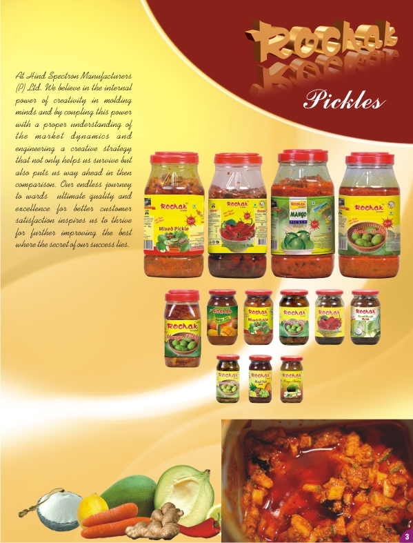 Our Pickles are made by adding herbs and spices to dried vegetables and fruits. Our complete range is fresh and natural and is widely in demand among the customers for its aroma and pleasant taste. The spicy mixed pickle variety we offer is made from fresh green mangoes to assure the quality and trustworthiness of our pickle. Our variety of Pickles encompasses: