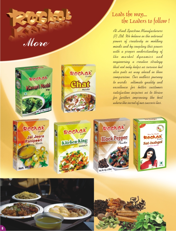 Chat Masala gives taste to all kinds of the food we eat . It is used to flavour all the popular fast foods of India bhelpuri, golgappa, aaloo chaat and Dahi puri. ROCHAK CHAAT MASALA is something of an acquired taste, and can be added to all sorts of everyday foods and drinks or even eaten on its own.